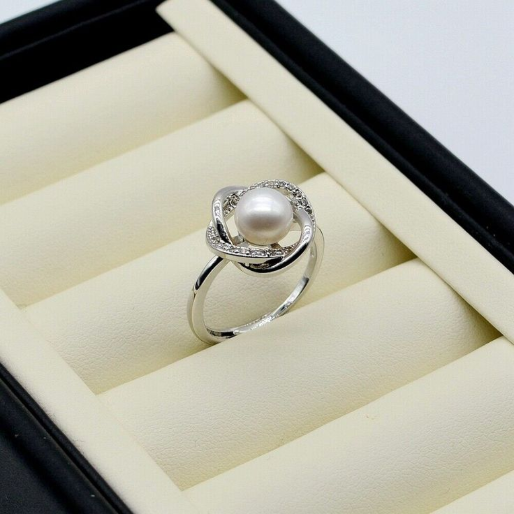 nhẫn ngọc trai nước ngọt với thiết kế tinh xảo được chế tác từ vàng trắng hoặc bạc xi bạch kim