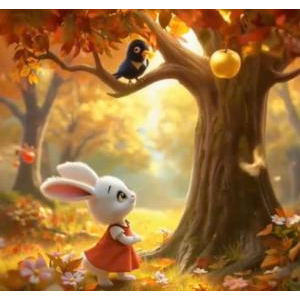 Vào cuối mùa thu, trên cây táo đầu rừng chỉ còn một quả táo chín vàng. Thỏ nhìn thấy nhưng không hái được vì quả ở cành cao, liền nhờ Quạ Đen giúp. Quạ vừa chạm vào thì quả táo rơi xuống lưng Nhím đang đi qua. Nhím ôm táo chạy, khiến Thỏ và Quạ đều cho rằng quả táo thuộc về mình. Ba bạn tranh cãi kịch liệt.