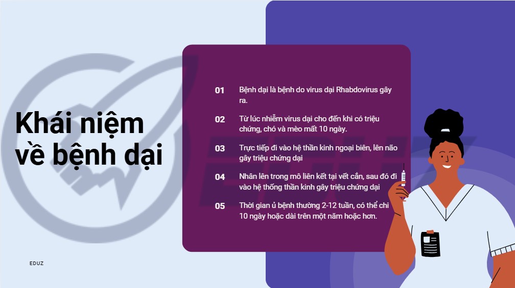 Bệnh dại là bệnh do virus dại Rhabdovirus gây ra. Theo thống kê dịch tễ học, các nước thuộc vùng Đông Nam Á, hằng năm, có tỷ lệchết do bệnh dại chiếm đến 80% toàn thế giới.