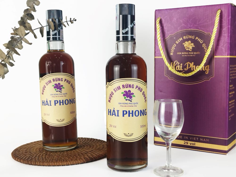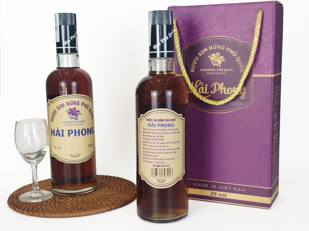 Phú Quốc – Kiên Giang được thiên nhiên ban tặng cho nhiều rừng sim, vì thế mà ở Đảo Ngọc, con người được cơ hội nuôi trồng và sản xuất các sản phẩm về cây sim rừng trong đó có Rượu sim rừng Phú Quốc Hải Phong, với quy trình sản xuất nghiêm ngặt và kỹ lưỡng, chất lượng của thương hiệu được đảm bảo với hương vị của rượu vừa thơm ngon, vừa độc đáo, từ thanh ngọt đến chan chát mang đến cho thực khách khi nếm thử một trải nghiệm vị giác khó quên.