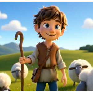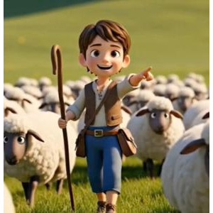 Hình ảnh chú bé chăn cừu: Các con có biết cậu bé đang làm gì không?