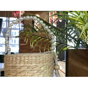 Sản phẩm được thiết kế theo hình trụ, bầu, dài, chắc chắn với kích thước đường kính 14cm, chiều cao 17cm và chiều cao quai 13cm. Quai cầm của sản phẩm được tạo thành bởi ngọc trai nhân tạo làm cho giỏ trông tinh khiết và hiện đại hơn.